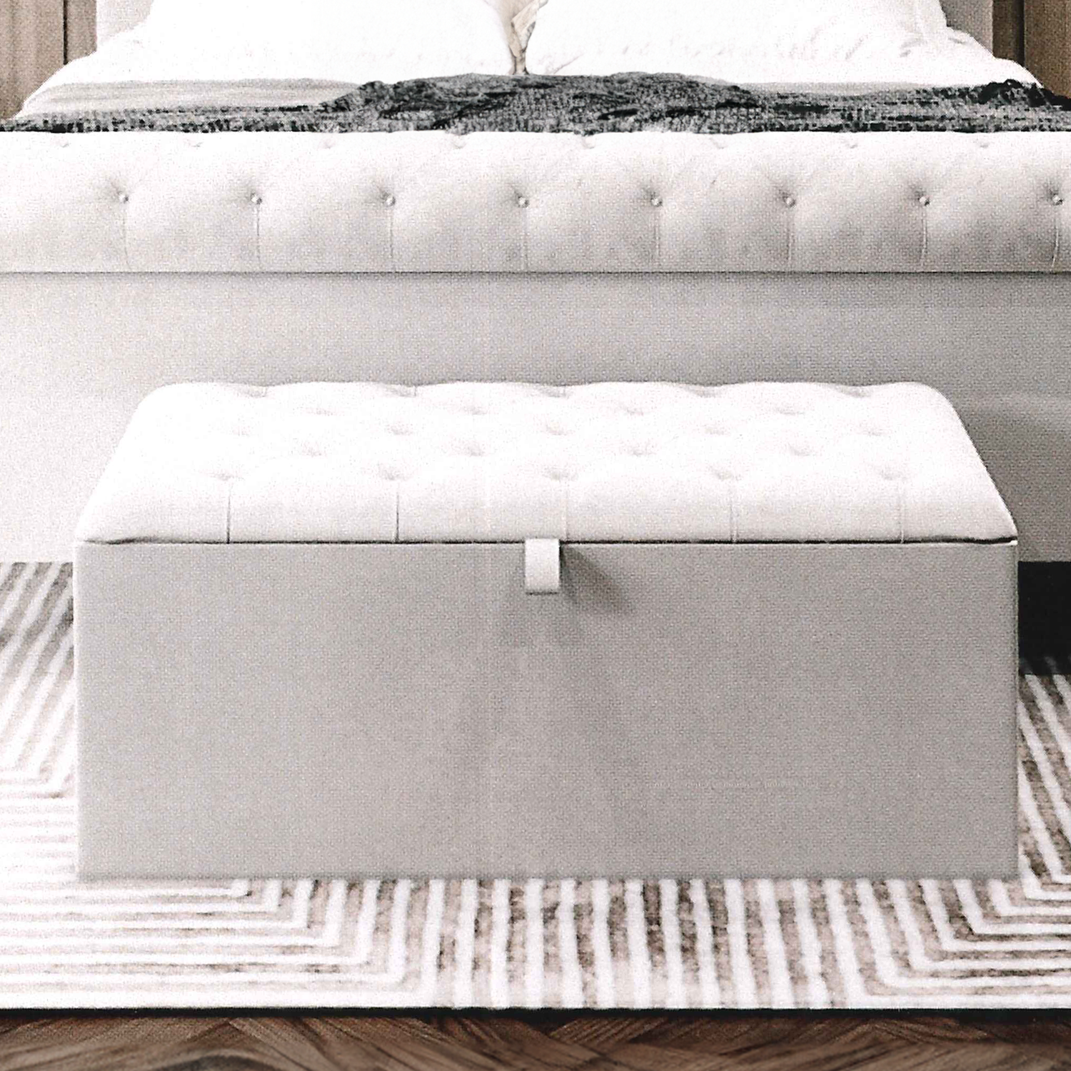 Complete your luxurious bedroom ensemble with a beautifully crafted matching blanket box. Available in one size, it adds an exquisite layer of elegance and practicality to your space.